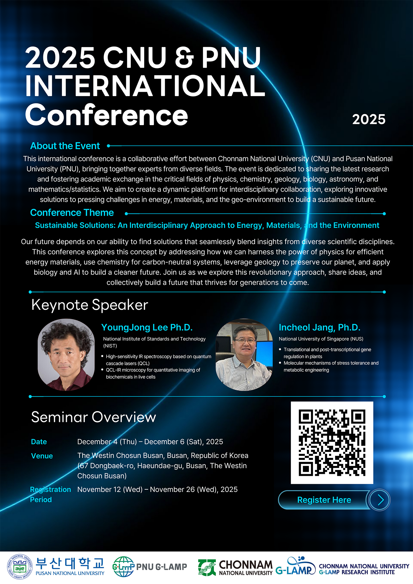 This international symposium is jointly organized by the G-LAMP programs of Chonnam National University and Pusan National University. It aims to comprehensively integrate the latest research achievements and innovative technologies in the fields of eco-friendly materials and energy.